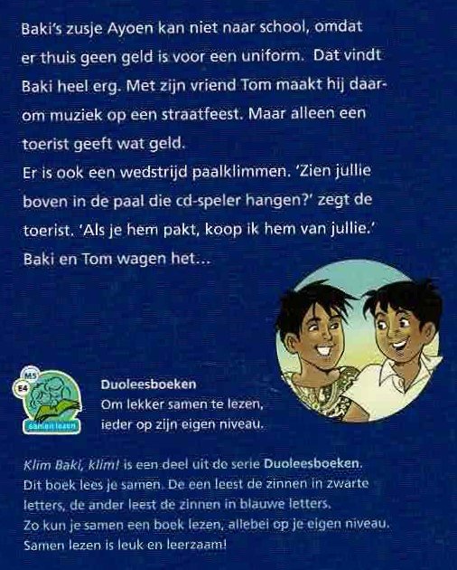 Klim Baki, klim! / Peter Vervloed (Duoleesboek; AVI E4 – M5; Harde kaft)